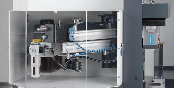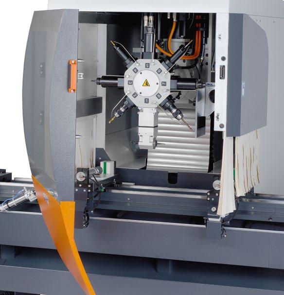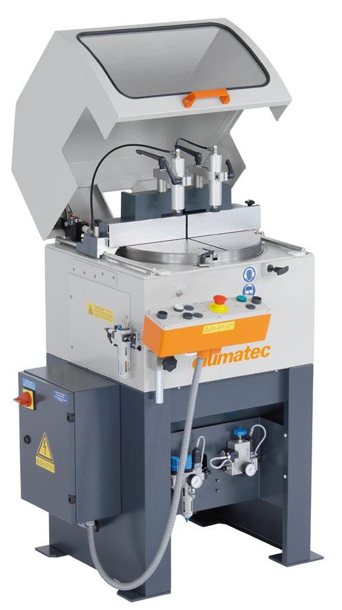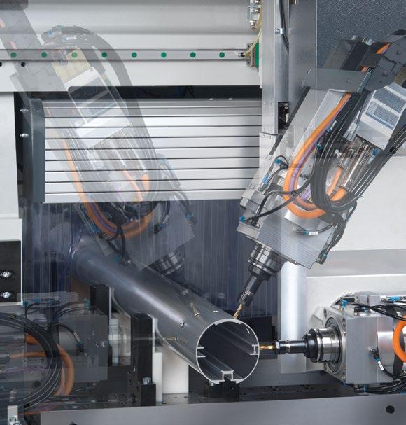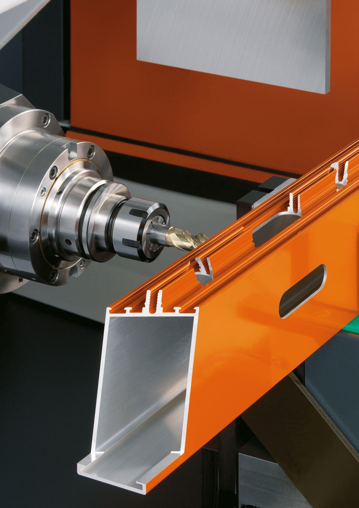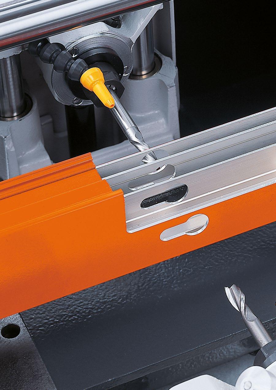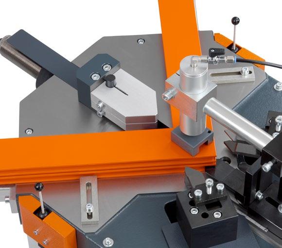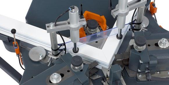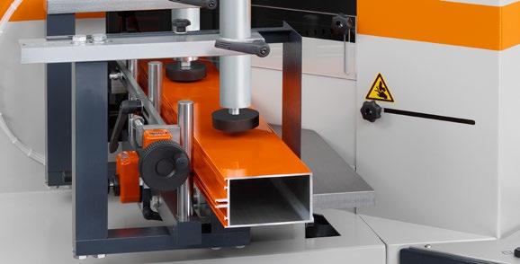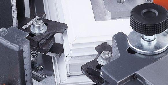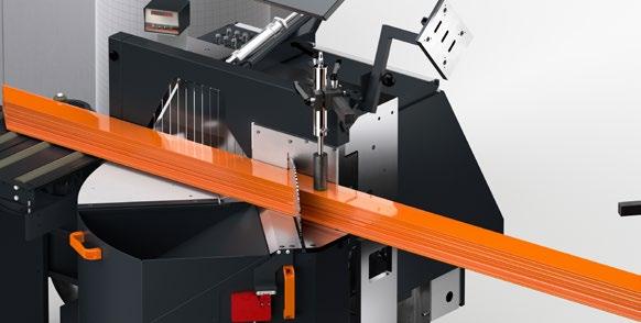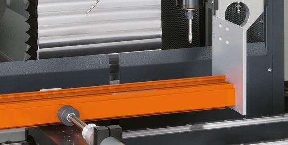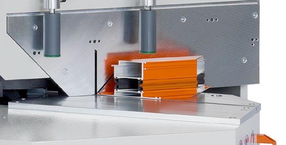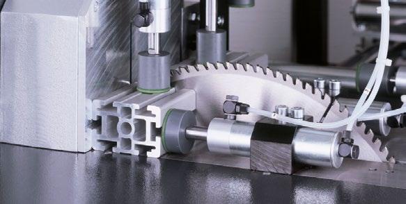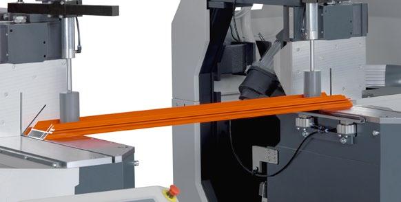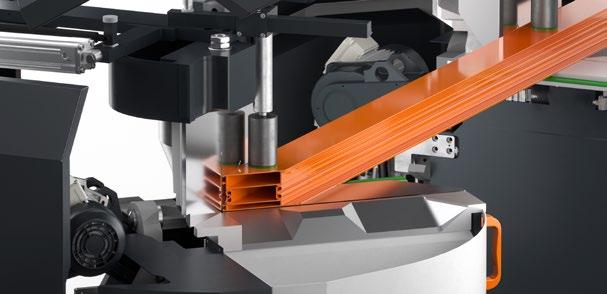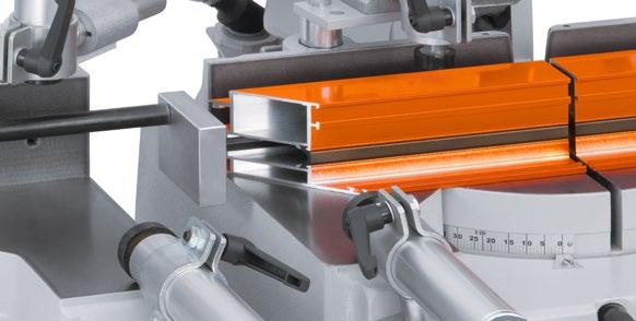 • Motores portafresa colocados 360° de forma continuo respecto a la barra perfilada así como un ángulo de corte ajustable continua para mecanizar perfiles en las más diferentes posiciones de sujeción