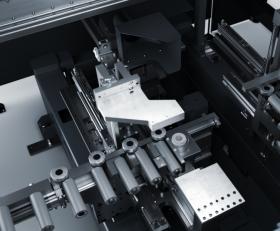• El módulo de contorneado opcional interviene en 3 ejes CNC mediante un electromandril que permite fresar los extremos de los perfiles cortados a 45°