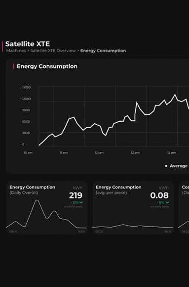 voilàp connect es una plataforma IoT (Internet of Things, Internet de las Cosas) basada en la nube que permite monitorizar las máquinas, su consumo energético y neumático, así como el estado de la producción en tiempo real y desde cualquier lugar. Su panel de control proporciona acceso al historial de datos de la máquina, facilitando el análisis de la productividad, el cumplimiento, las alarmas y los tiempos de inactividad. Esto permite medir y mejorar rápidamente la capacidad de producción, reducir el consumo y los desperdicios, así como prever las necesidades de mantenimiento.