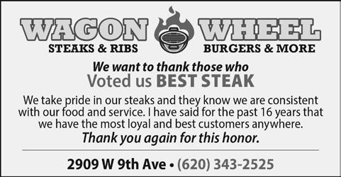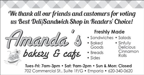keeping regular business hours and having management on duty. Most all of our menu items are made from scratch and our catering plays a big part in the success of our restaurant. We just recently did a little kitchen up dating to prepare for the filming of America’s Best Restaurants’ with the production date to be announced. We want to thank the Emporia Gazette Readers and our loyal customers that voted for us and may God bless you as we have been blessed.