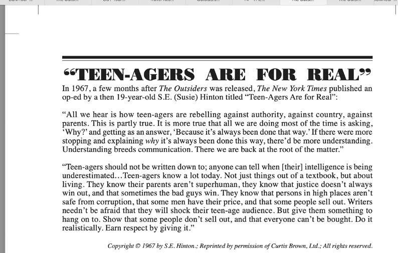 When did you read The Outsiders for the first time, and what did you love about it?