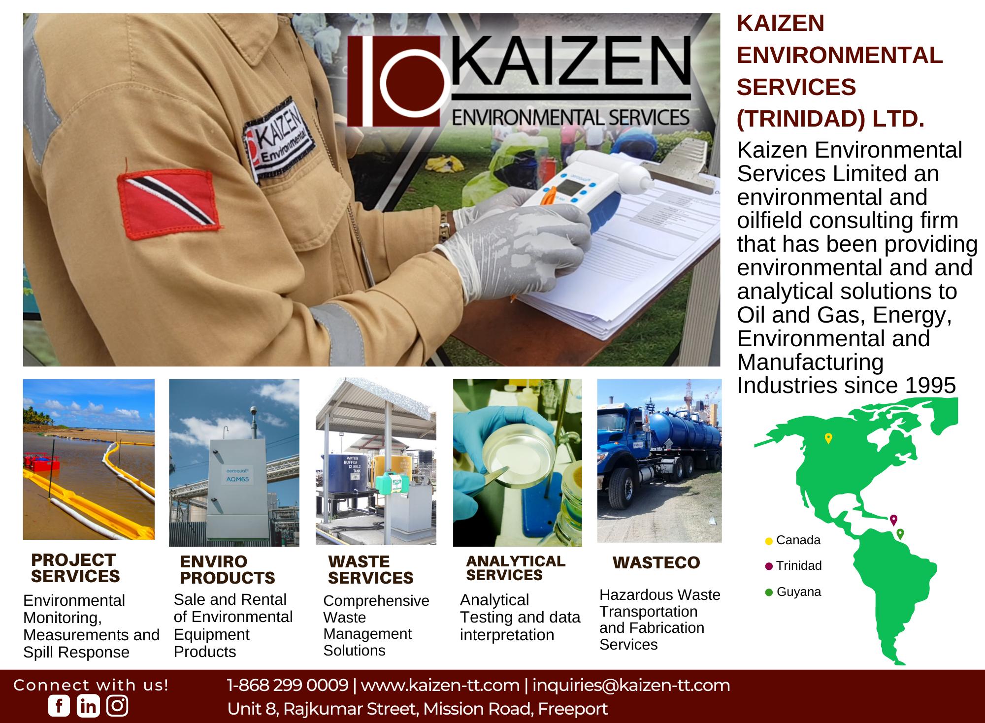 Trinidad Ltd are working to provide effective and responsible solutions to combat the growing issue of waste generation. Throughout its services, Kaizen continues to provide solutions to increasing environmental problems by providing services across all industries. With the help of Kaizen, organisations can improve their environmental conservation efforts in line with global regulations, whilst hitting their own sustainability targets. Consequently, Kaizen is leading the way across Trinidad for providing sustainable waste management, collection, transportation, and disposal across the country, whilst contributing significantly towards regional and international research efforts to improve conservation through its laboratory facilities.