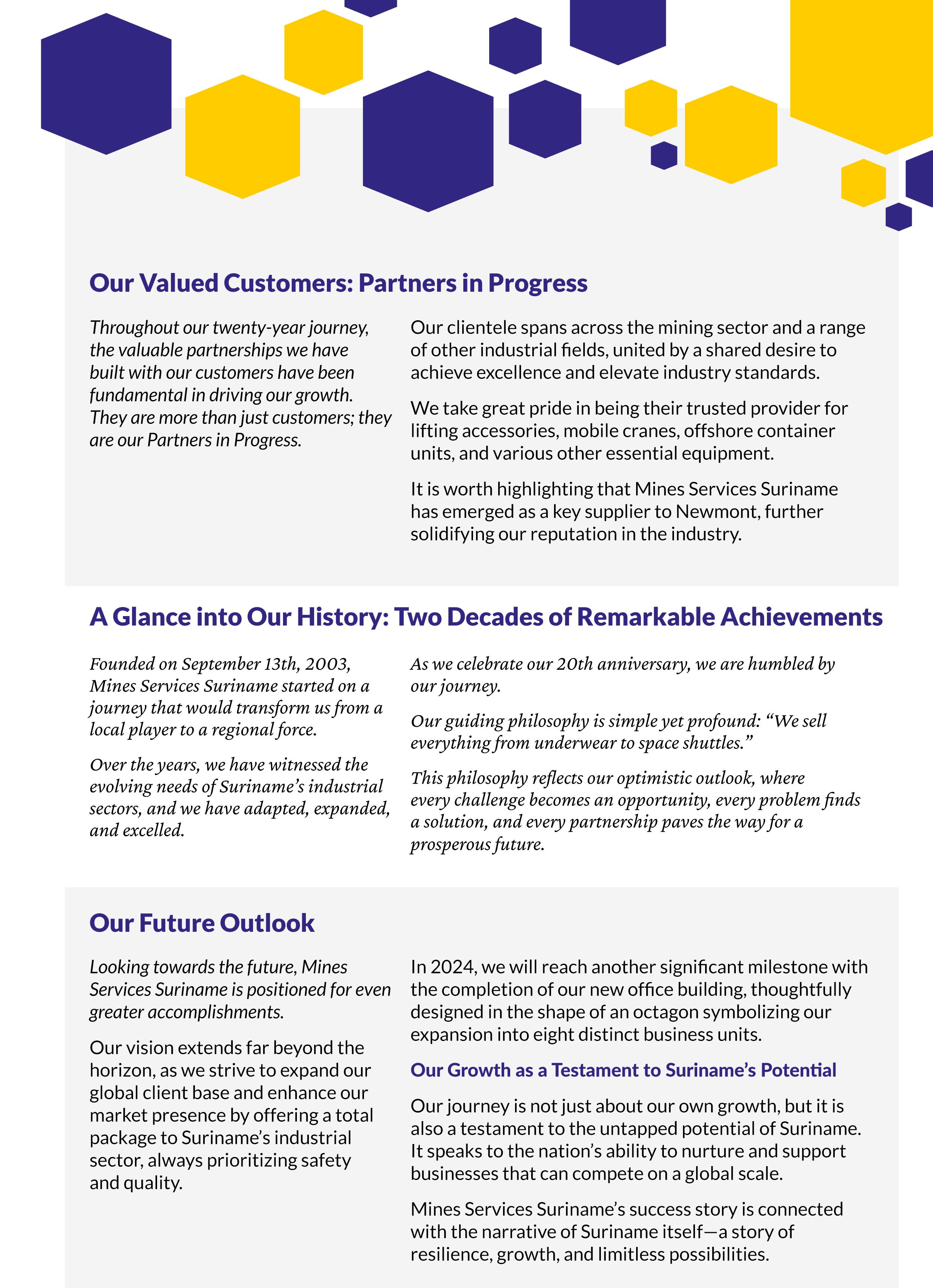 reap key benefits from Newmont’s mining activities within its community. Consequently, Newmont is committed to continuing its close engagement with government and local community members to advance the development of the project in a manner that will generate sustainable economic and social benefits for people across Suriname.