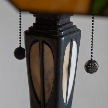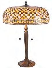The shade is then washed and dipped in a chemical bath to patinate the bright solder to a distinctive antique finish