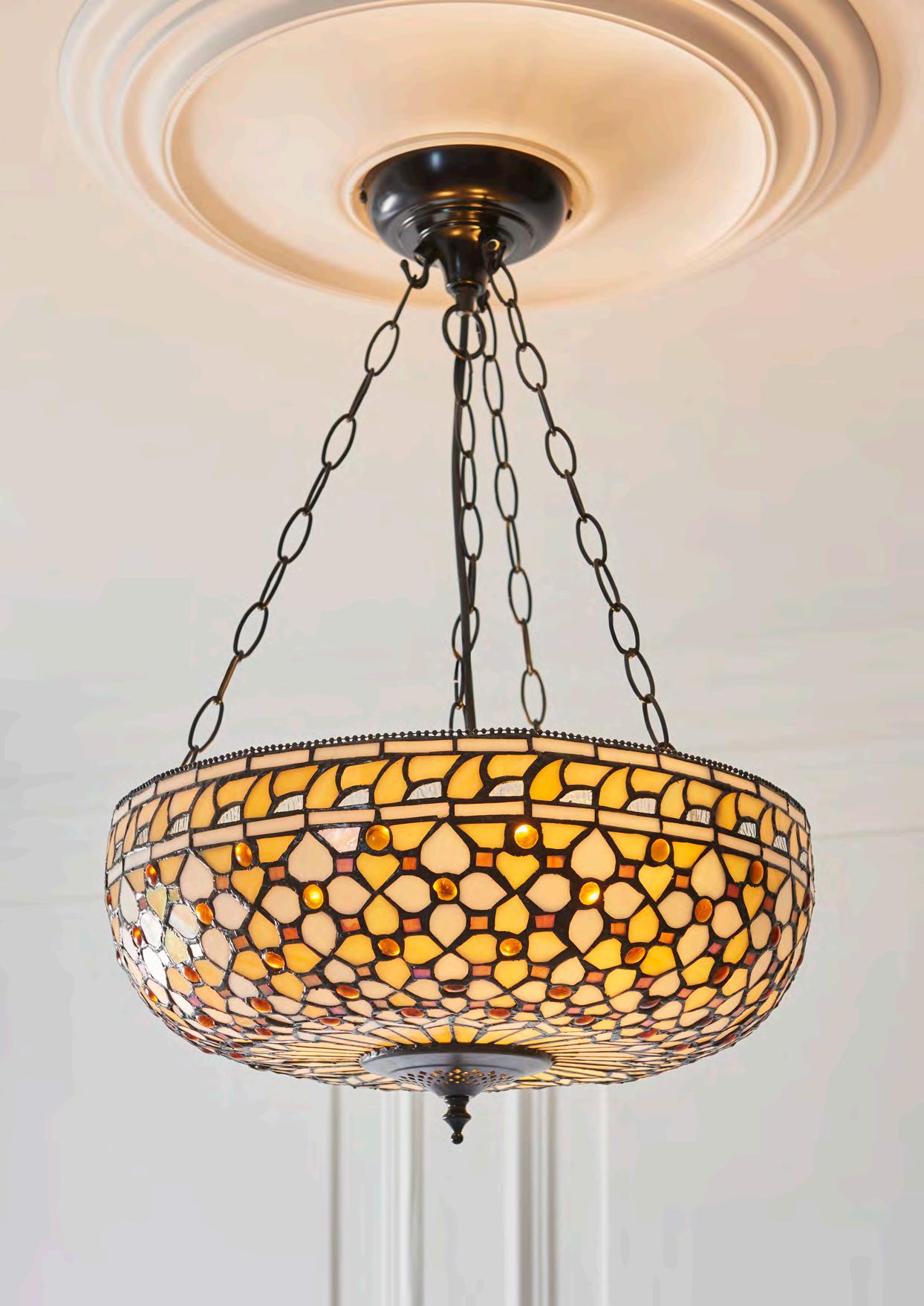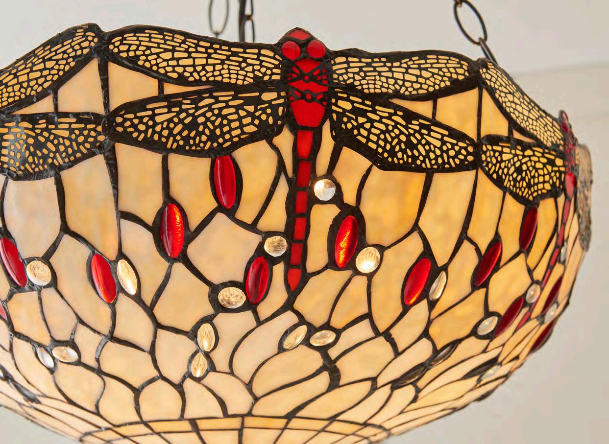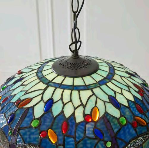 Each and every piece within the collection showcases the distinctive Tiffany mosaic style in a stunning array of differently coloured intricate stained glass designs. All are beautifully soldered together using a traditional copper foiling technique to complete the trademark Tiffany look and finish.