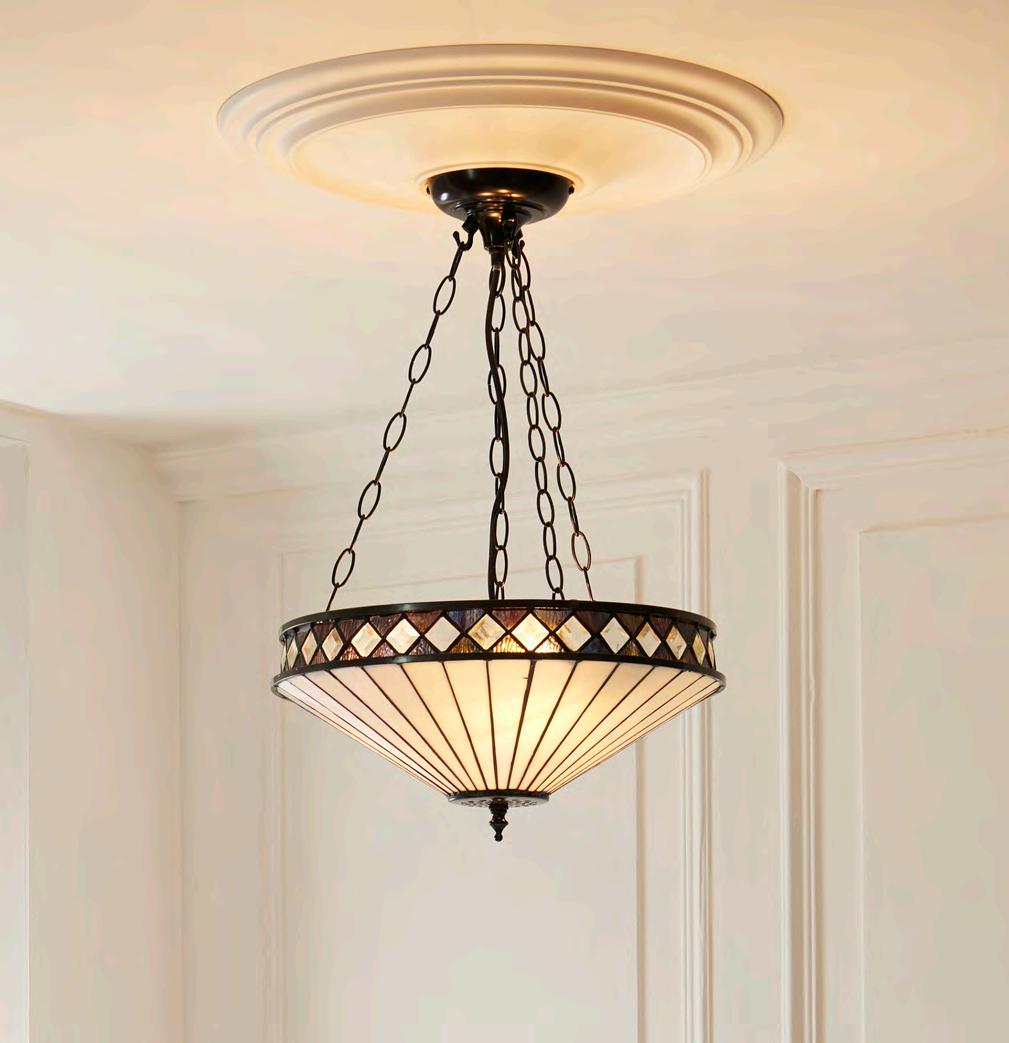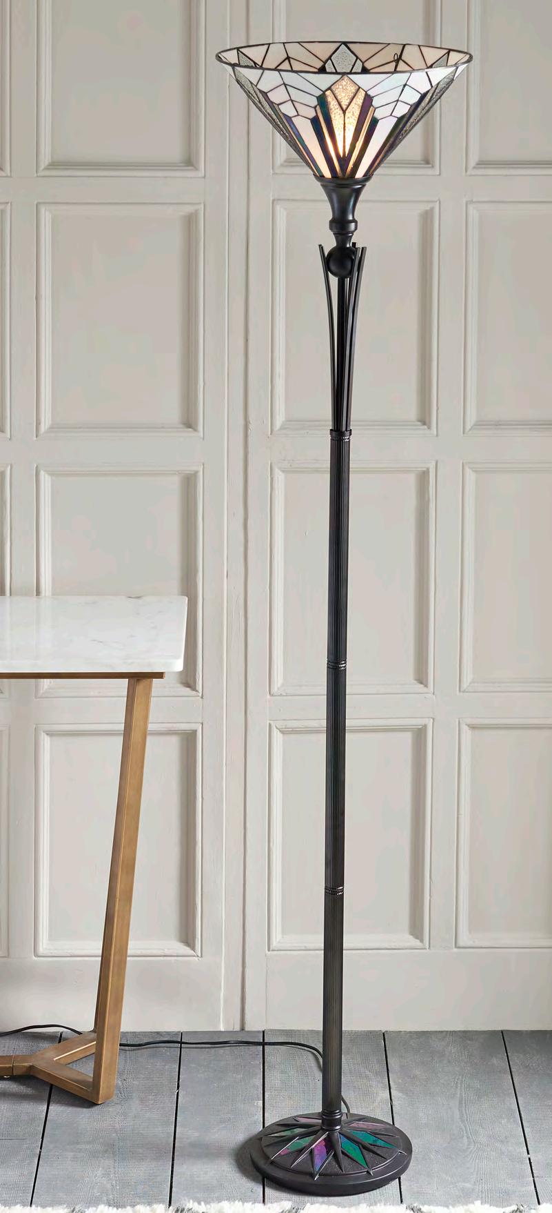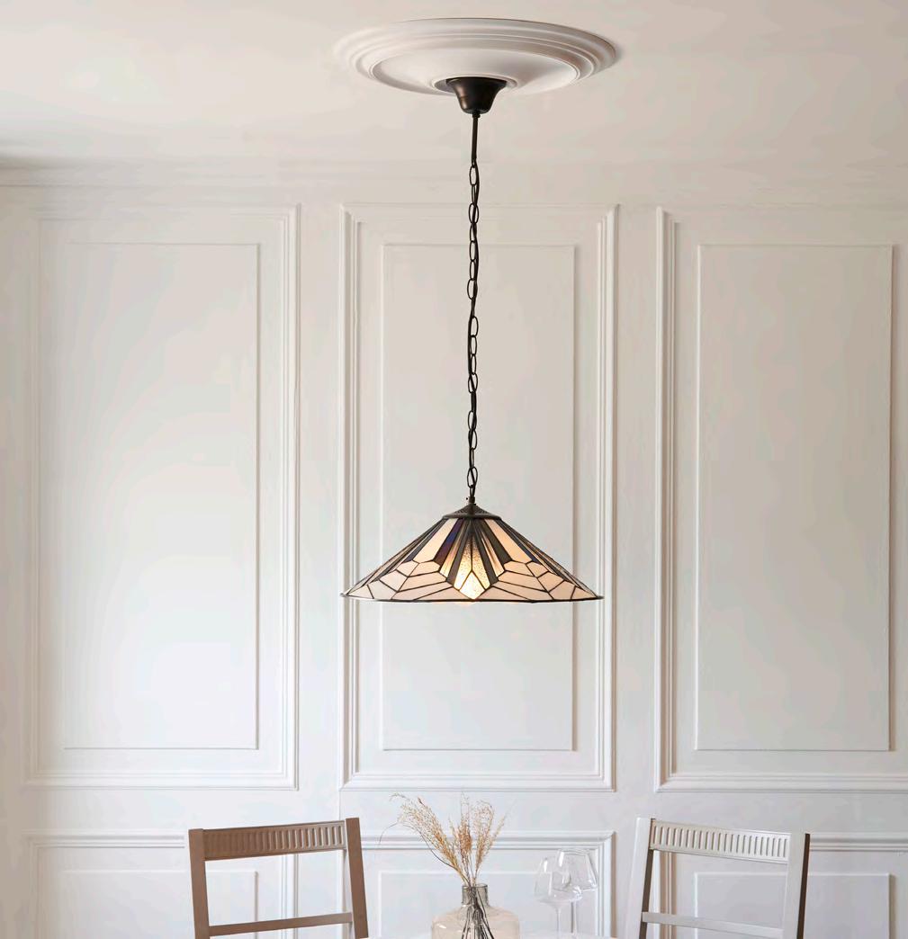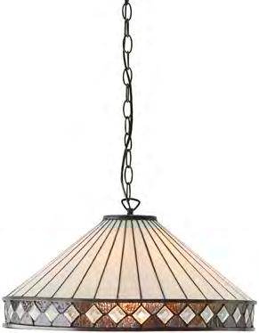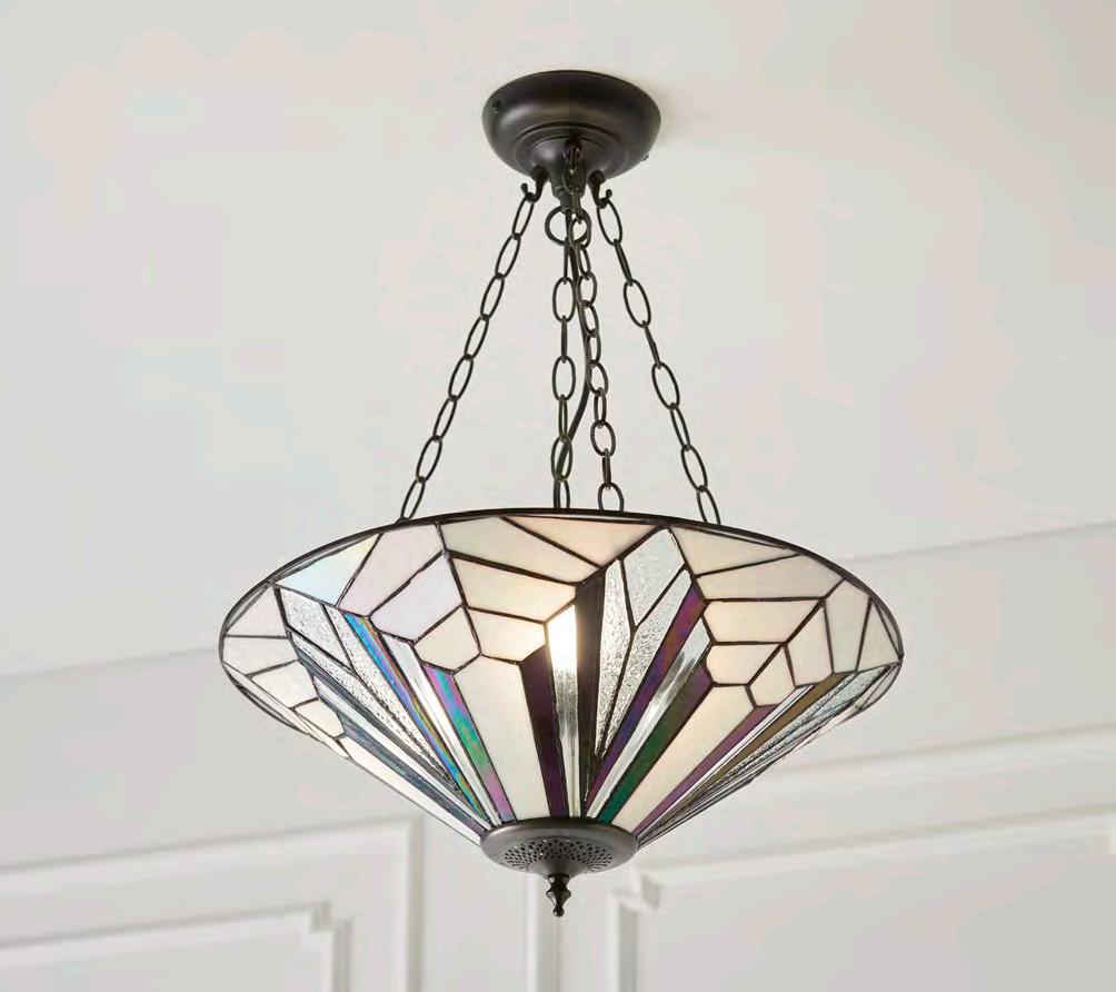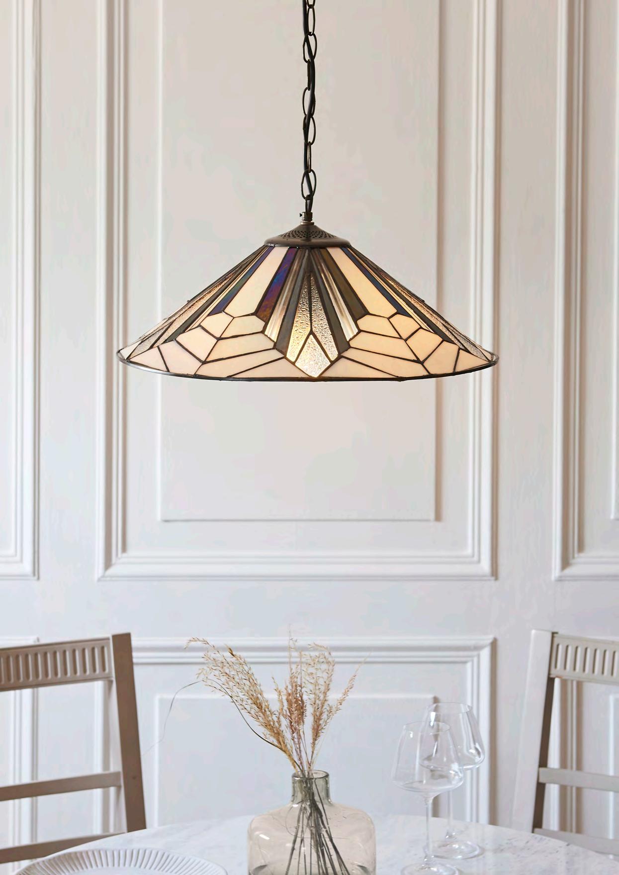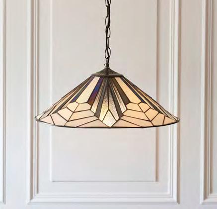 The Astoria collection uses dynamic lines in true Art Deco style. This Tiffany range is created from bevelled and textured glass producing a stunning light effect