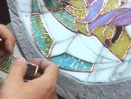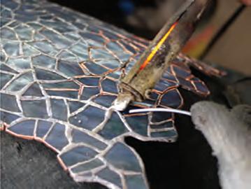 Once all the glass is in place, the shade is soldered again on the outside to add strength and create an attractive finish