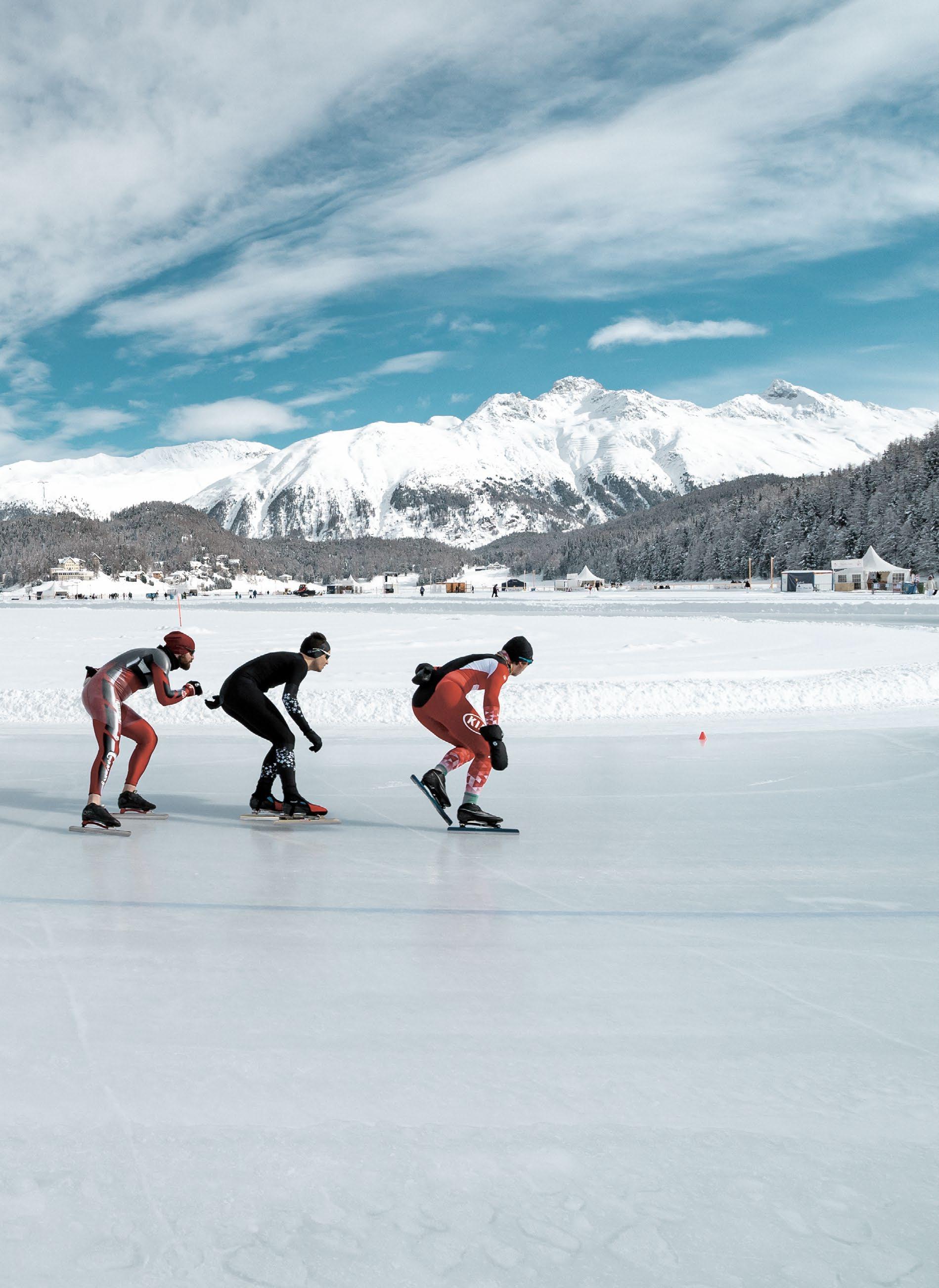 Da es in der Schweiz kein 400 Meter Oval aus Kunsteis gibt, wurden die Schweizer Eisschnelllauf-Meisterschaften 2019 auf dem lebendigen Natureis mit herrlichem Panorama in St. Moritz ausgetragen.