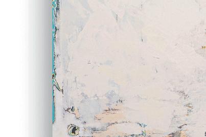 she collects from friends’ studios, offcuts from another process and already a little worn. Langley says: “I like how the paint applies itself viscously to the wood’s thick and smooth base, and shapes the more sculptural forms.” Some finished paintings easily fit in a palm, like chunky cells separated from a graphic novel and set adrift from the original story. Their meanings are shrouded: ‘We Need to Talk’ spells out one; ‘Prom Night’ is the title of another; ‘Perfect Pair’ is a third. That elusiveness has a sensual quality that brushstrokes then embody, appearing broad and even luscious on the miniature surfaces. Paint drips down the panel’s side as if the picture is trailing off into another state altogether. They are not quickly made: a small painting is a week’s work; a larger painting 20 inches wide can take a year, with several others on the go simultaneously. “I like the intimacy involved in painting and viewing. It makes the objects or figures painted on these surfaces appear fragile or precious. This contrasts nicely with the more unsettling nature of the imagery.”