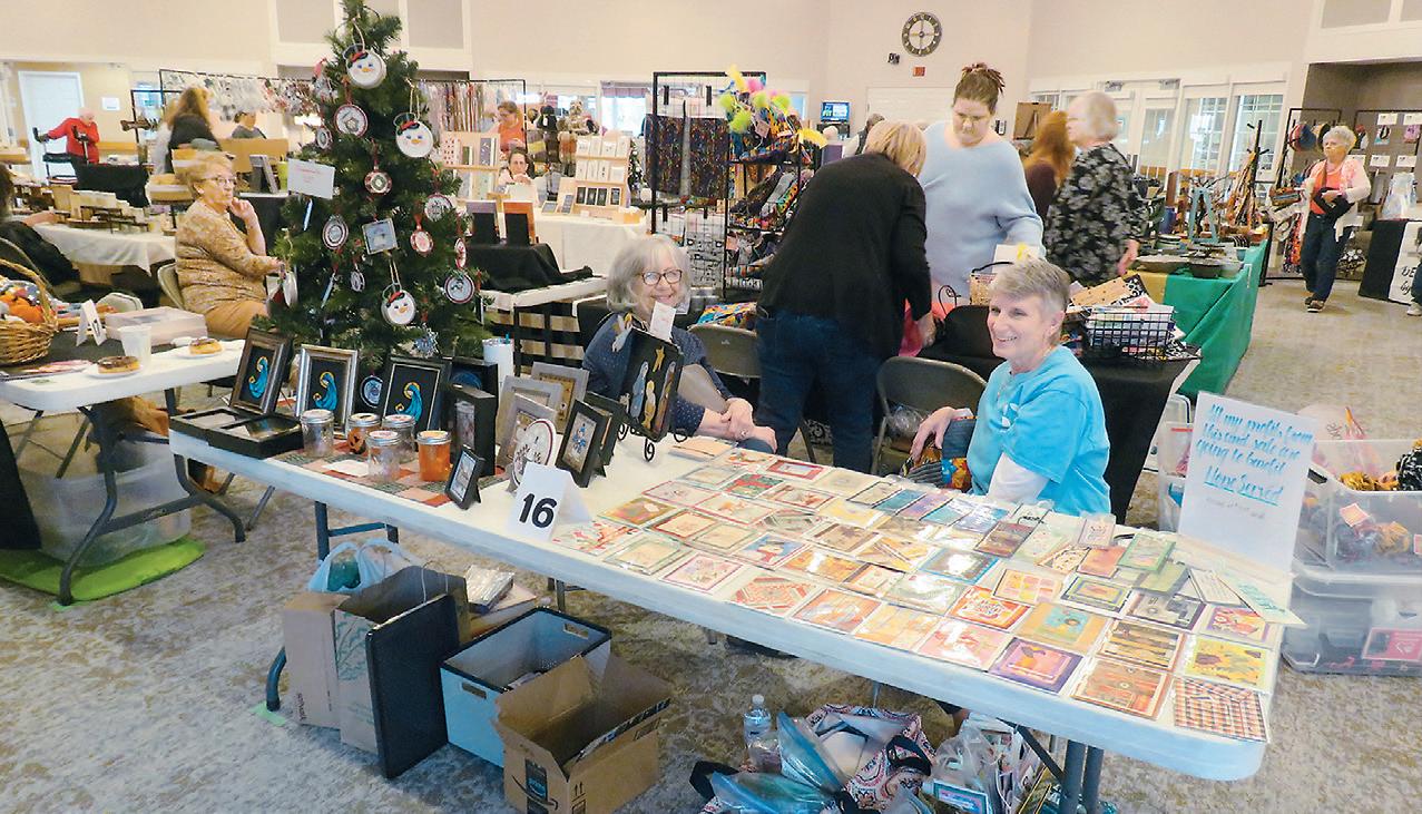 More than 100 tables will be set up with pottery, stained glass, watercolors, paper crafts, jewelry, cards, quilts, knitted items, kitchen baskets, tote bags, pet supplies and more. Hoffer Farm alpaca wool from the community’s farm will be for sale as well.