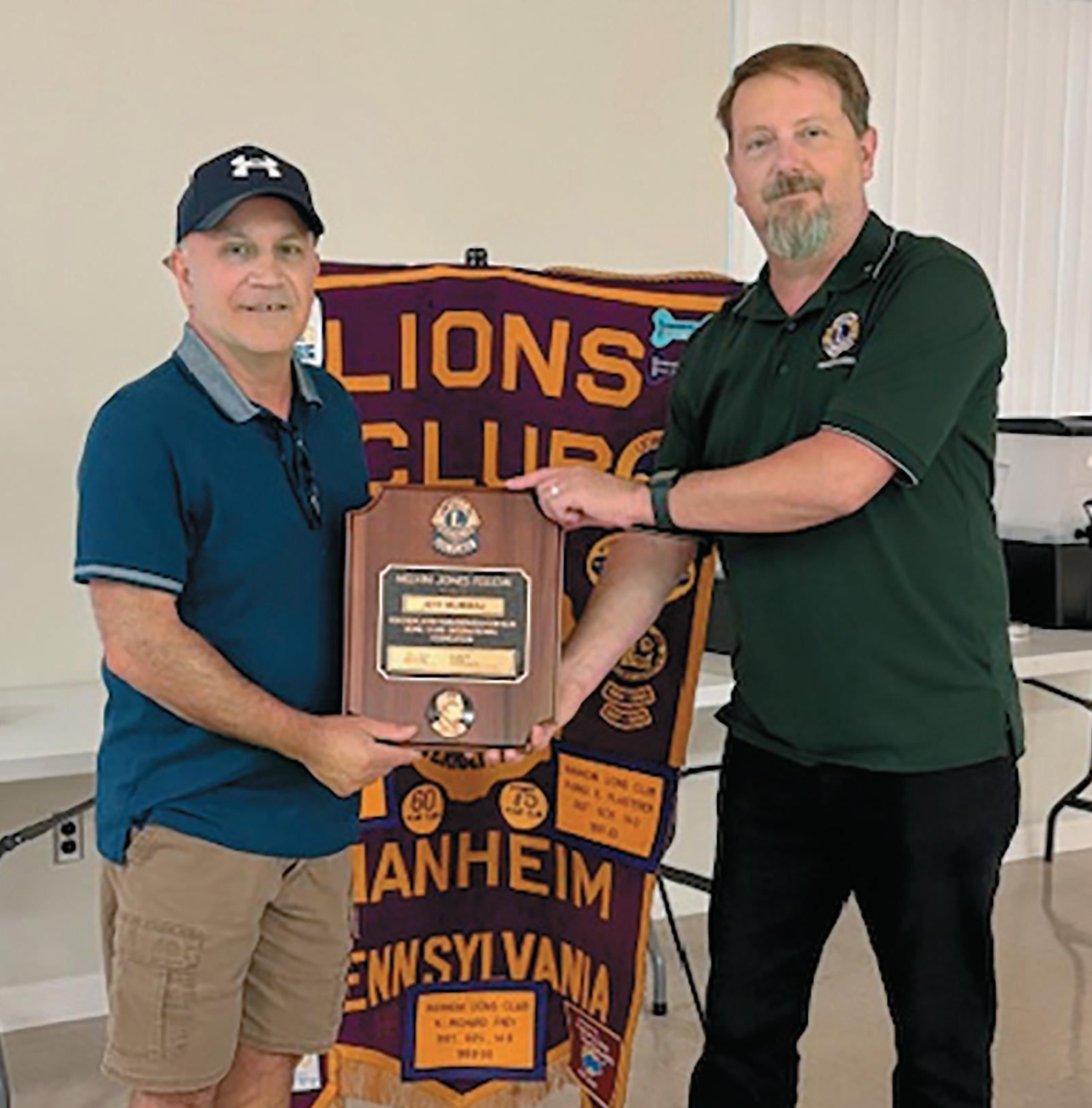 “Melvin Jones founded Lions Clubs International in 1917,” Henderson explained. “The Melvin Jones Fellowship Award is the highest recognition given by Lions International worldwide, honoring extraordinary humanitarian service and dedication. In Manheim, the award was presented this year to Jeff Mummau for his decades of commitment to the U14 team and the Lions ballfield.”