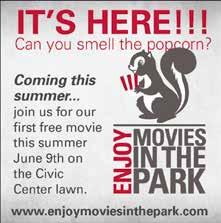 Our Movies in the Park summer series resumes this month, with free family movies on the second Friday of June, July and August. Visit enjoymoviesinthepark.com to learn more, and we’ll look forward to seeing you there.