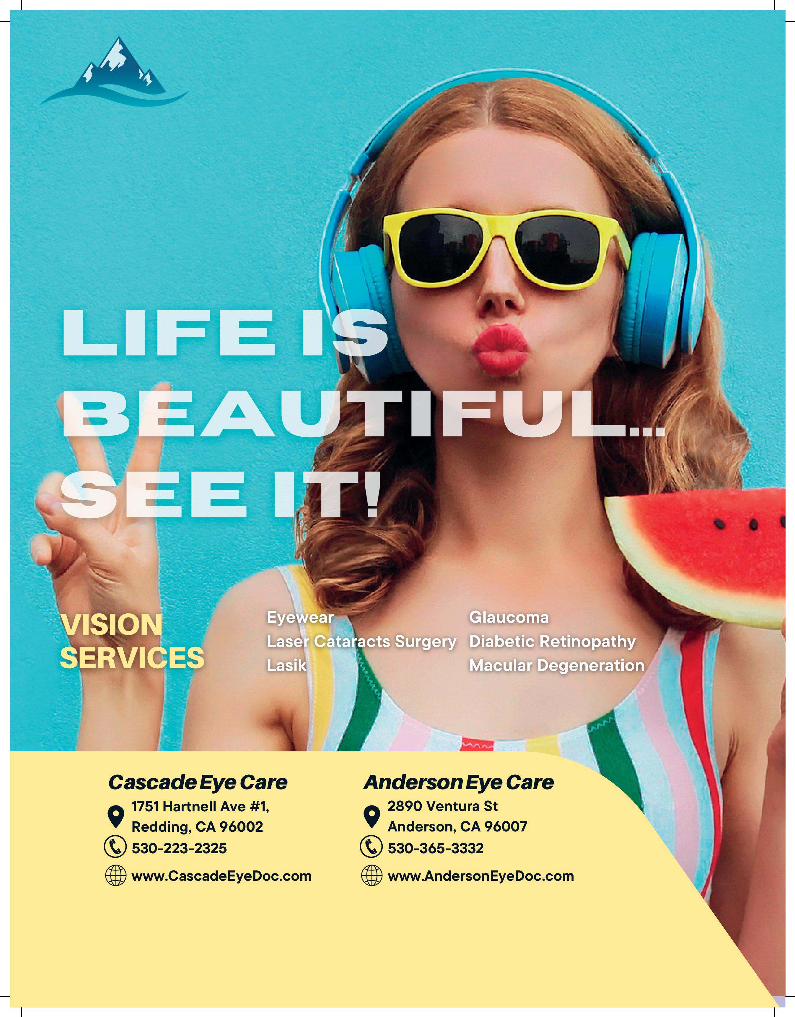 CASCADE THEATRE’S SUMMER-AUTUMN SEASON IS ON SALE NOW july 18 Opening Act Mini Trees Living Loving Led sept 9 Masters of Illusion sept 21 Shakey Graves oct 6 Shane Smith oct 7 Infamous Stringdusters nov 5 Comedian Ian Bagg nov 8 Cascade Christmas Opens nov 24 Celtic Christmas dec 20 july 21 UPCOMING SEASON SHOWS REDDING’S HISTORIC cascadetheatre.org 530-243-8877 Now accepting applications for the 2023-2024 school year! • Robotics • LEGO® Creative Design • Environmental Education • Turtle Bay Docent Programs • A Personalized Learning Innovative Educational Charter School • Premier Independent Study Program • Enriching Blended Model • Tutoring, Including Reading, Writing & Math • Shasta College Courses • A-G Courses Available • Computer-Based Instruction & Tutorials Community Service Provider Electives Available Let us partner with YOU to personalize YOUR child’s education. A California Distinguished School Phoenix Charter Academy College View offers a chance for students to rise. Our K-12 site-based/Independent study home school charter in Redding provides educational choice for families who wish to educate their children in a blended educational model. Thank you for supporting Charter Schools and Parent Choice (530) 222-9275 • www.ourpca.org 145 Shasta View Drive, Redding Ca. 96003 Phoenix Charter Academy College View