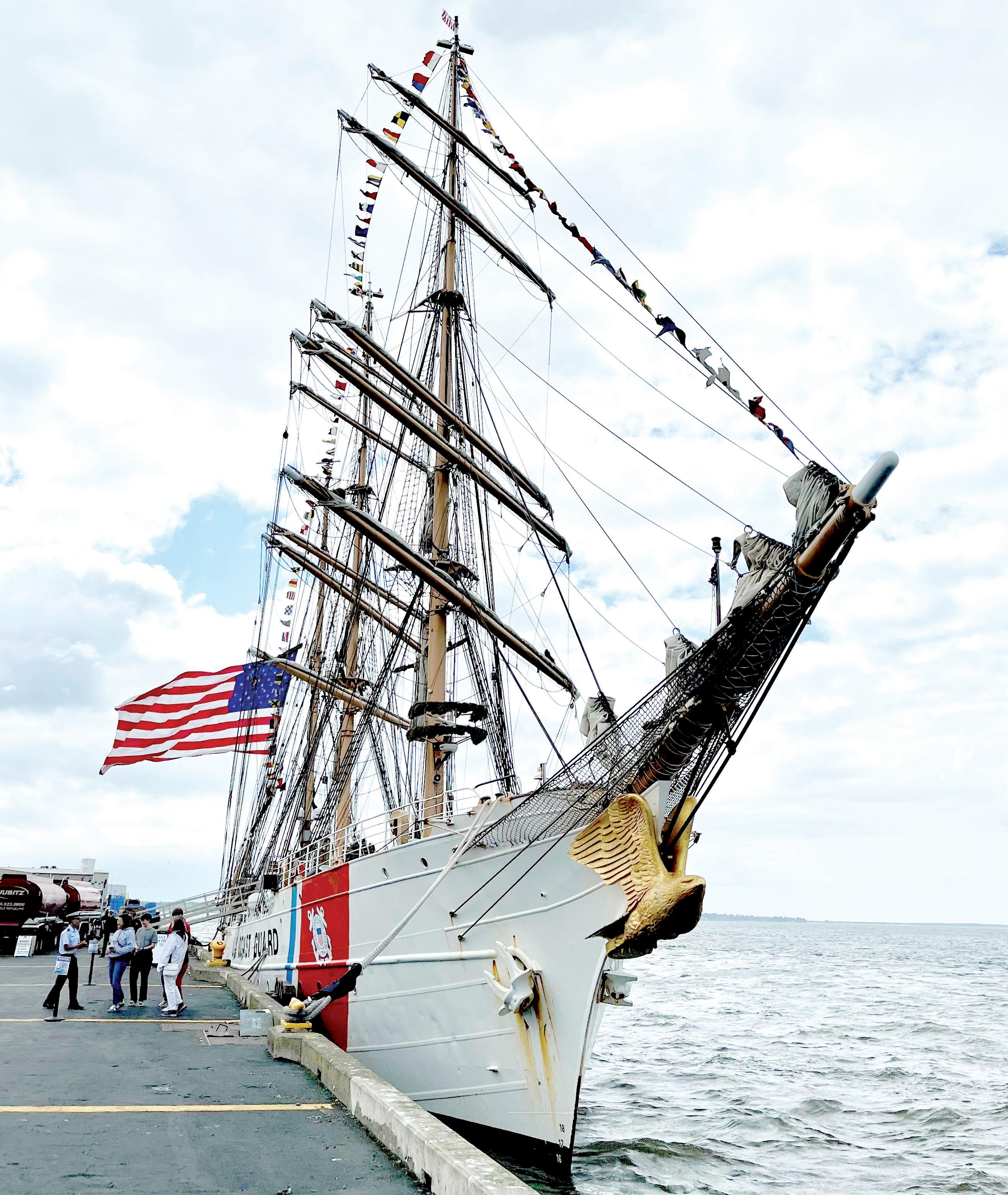 The U. S. Coast Guard Cutter Eagle (WIX-327), sail training ship of the USCG Academy, made port calls in Astoria and Portland in conjunction with this year’s Rose Festival. Eagle was built in Hamburg for the German Navy in 1936, and taken as a war prize in 1945. The 295 foot Eagle is a three masted barque, with over 6 miles of running rigging and 22,280 square feet of sail area.