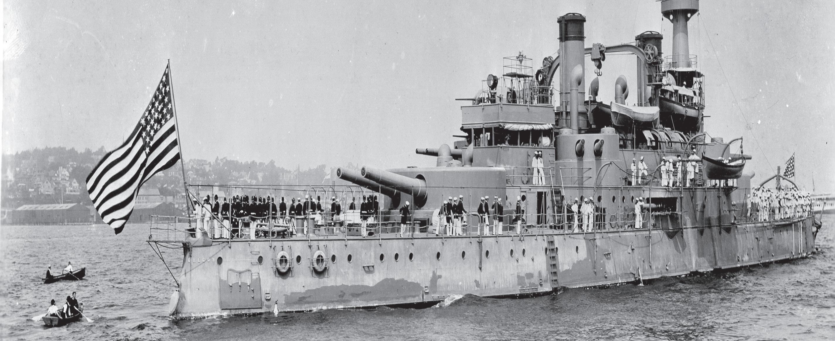 Manufacturer’s plate USS Oregon (BB-3) in New York Harbor just after the end of