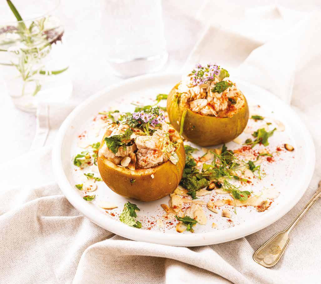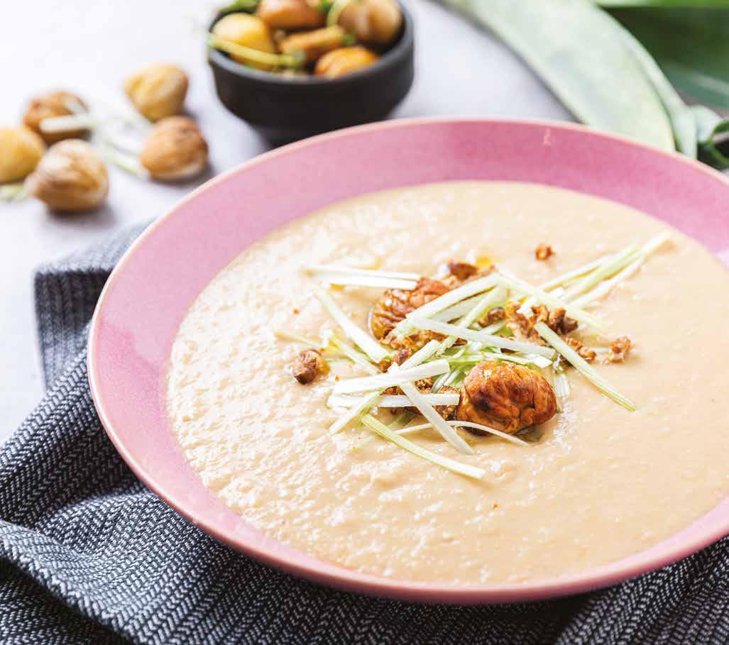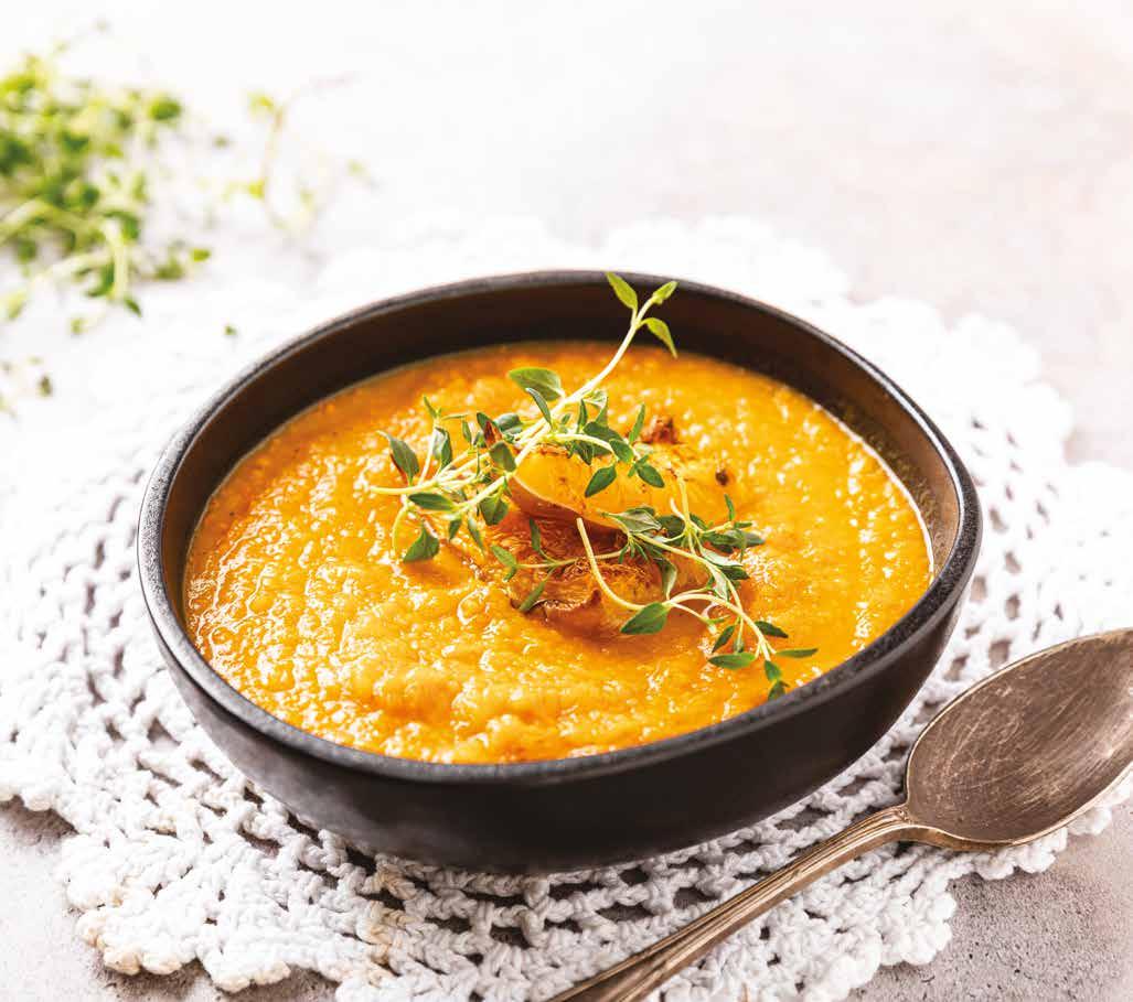 índice prefácio 5 Introdução 7 sopas Creme de batata-doce e cogumelos 14 Sopa de abóbora assada e tomilho 16 Sopa de castanhas e alho francês 18 Sopa de tomate assado com grão e paprika 20 vegetarianos Rolo de lentilhas com molho de tomate 24 Tentúgal de grão e couve-coração 26 Assado de feijão com crosta de broa e salsa 28 Favas ensalsadas com cogumelos e hortelã 30 peixe Aveludado de bacalhau e espinafres 34 Batata-doce recheada com cavala 36 Arroz de polvo e cebola roxa 38 Massada de lulas e nabiças 40 carne Maçã reineta recheada com frango e amêndoa salteada 44 Costeleta salteada com romã 46 Trouxas de couve recheadas com carne picada e alecrim 48 Jardineira de peru e beringela 50 sobremesas Farófias com molho de framboesa 54 Leite-creme de maçã reineta 56 Trança doce com raspa de tangerina 58 Mousse de alfarroba e laranja 60 snacks Muffin de feijão e cacau 64 Brigadeiro de maçã e canela 66 Wrap com pasta de tremoço e espinafres 68 Caracol salgado com pesto de manjericão e amêndoa 70 águas aromatizadas Água aromatizada com laranja, estrela de anis e alecrim 74 Água aromatizada com lima, hortelã e kiwi 76 Água aromatizada com erva-príncipe, cardamomo e gengibre 78 Água aromatizada com romã e pau de canela 80