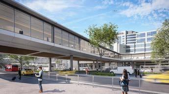 The scope of work for stage two of the Melbourne Airport Road and Forecourt project includes construction of a new 18-metre-wide pedestrian bridge and gateway from the T123 carpark to the terminals, forecourt reconfiguration, a new vertical transport hub, and reconfiguration of the T123 carpark. The project is set for completion in late-2026.