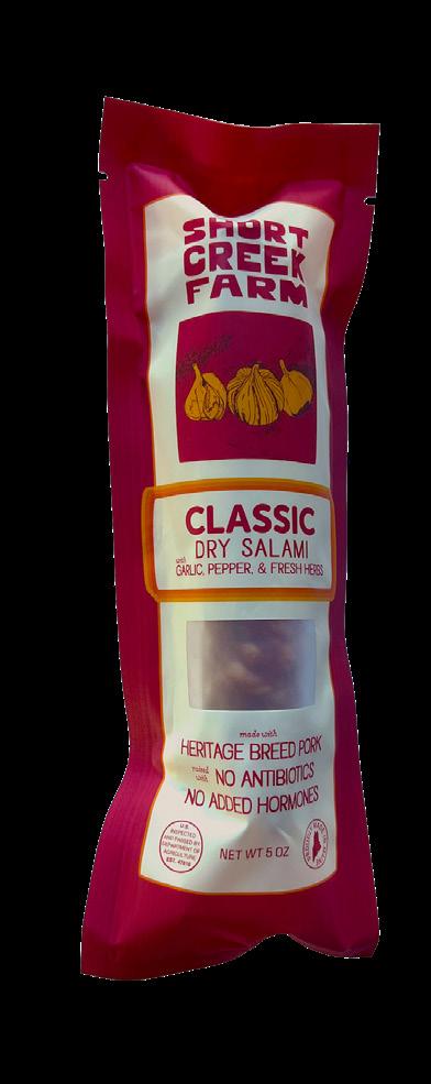 Founded in 2015 on 300 acres in Northwood, New Hampshire, Short Creek Farm focuses on heritage breed, pasture-raised pork and locally sourced ingredients. Their Classic salame, a nod to mild soppressata, is delicately seasoned with garlic, fresh thyme, and warm spices that highlight the deep flavor of their pork. Equally notable is the Siciliano Salami, rich pork blended with toasty fennel seeds, bright citrus, and zesty chile. Inspired by Southern Italy, this savory, well-balanced salami features lemon zest to cut through the marbling and just the right amount of heat to keep each bite interesting.