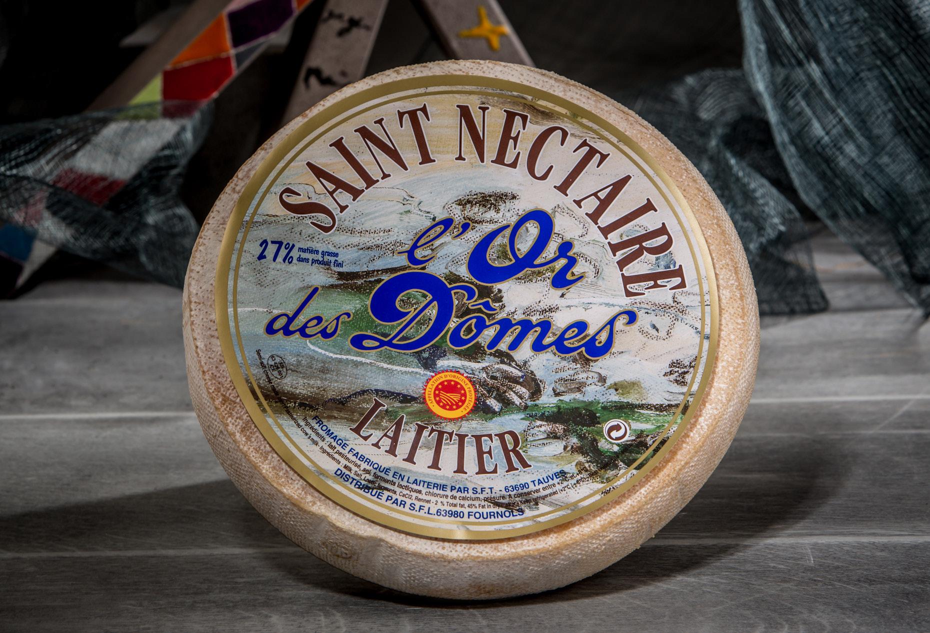 Saint Nectaire Auvermont is a semisoft, uncooked pressed cheese salted in brine and ripened for at least 28 days. This dense cheese has a silky texture with a soft acidity, and its taste is similar to that of Reblochon with hints of hazelnut and mushrooms.