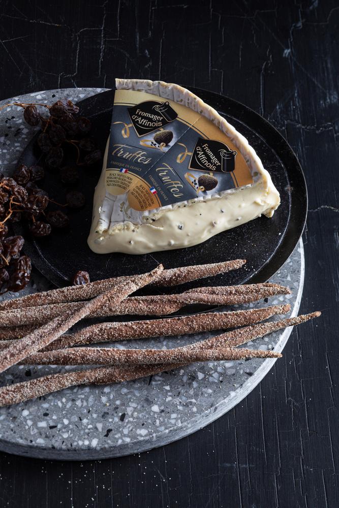 After approximately four weeks of maturing in the cellar, Brie is cut in half across its depth then stuffed with a delicious mix of truffles, P.D.O. fresh cream and Mascarpone.