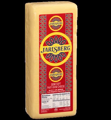 A mild semi-soft, part skim cheese made from cow’s milk, Jarlsberg has a buttery, rich texture with a mild, nutty flavor. It is an all-purpose cheese, good for cooking and for snacking.