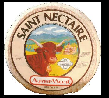 Saint Nectaire Auvermont is a semi-soft, uncooked pressed cheese salted in brine and ripened for at least 28 days. This dense cheese has a silky texture with a soft acidity, and its taste is similar to that of Reblochon with hints of hazelnut and mushrooms.