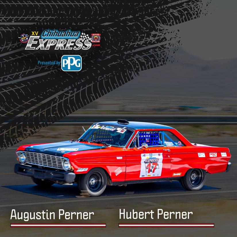 Chihuahua EXPRESS 2022 7 NUMBER 42 46 518 390 13 65 33 433 26 302 0 14 6 75 17 289 54 115 TBD 10 72 DRIVER David Buchanan Fergus Fay Jeff Frank Roger Furrer Bassam Haddad Kaming Ko Frank McKinnon Carson Scheller George Schroeder Walter Sikes Vance Stewart Jr Vance Stewart Sr Richard Tomlin Steve Walters Augustin Perner Ralf Christensson Doug McDonald Hilaire Damiron Adrian Stevens Diego Ribadeneira Gilberto Jiménez CO-DRIVER Phillip Williams Marco Gonzalez Marisa Marroquin Galen Staford TBD Laurence Seiterle Kirk Patterson René rodríguez N. Kristin Stewart Jeff Kurtz Janet Walters TBD Magnus Widen Max McDonald Laura de Freitas Annie Stevens Gustavo Pradilla TBD COUNTRY USA USA USA/USA SWI/MEX USA/LIB CHI/USA USA/USA USA/USA USA/USA USA/USA USA/USA USA/USA USA/USA AUT SWE/SWE USA/USA FRA/BRA ENG/ENG ECU/COL MEX CATEGORY Menos 2.4 litros PanAm PanAm PanAm PanAm 2.4 liters to 4.5 liters PanAm PanAm Unlimited PanAm Historic “C” PanAm 2.4 liters to 4.5 liters PanAm Sports Mayor PanAm PanAm CAR Subaru Impreza 2001 Ford Falcon 1963 Porsche 911 1971 Dodge Dart 1966 Ford Victoria 1954 Ford Mustang 2010 Porsche 911 1972 Ford Victoria 1952 Ford Mustang 2005 Mazda Exocet Mercedes Benz 220 1964 Falcon Sprint Coupe 1965 Ford Mustang Fastback 1966 BMW M3 2004 Studebaker Commander 1954 LT Special Ford Mustang 1965 Ferrari