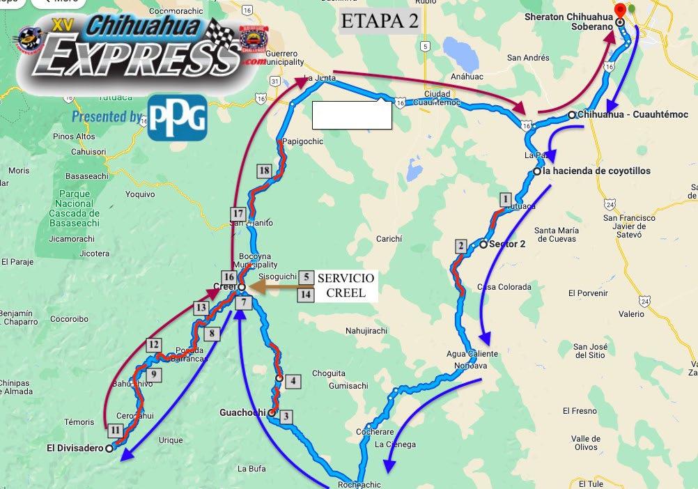Con el apoyo y las recomendaciones de Chrystian A. Llamas Loya, Coordinador de FITA Chihuahua, de la Secretaría de Innovación y Desarrollo Económico, la ruta del Día 2 de competencia, el trayecto a Divisadero, se modificó con tramos demandantes y largas etapas de velocidad.