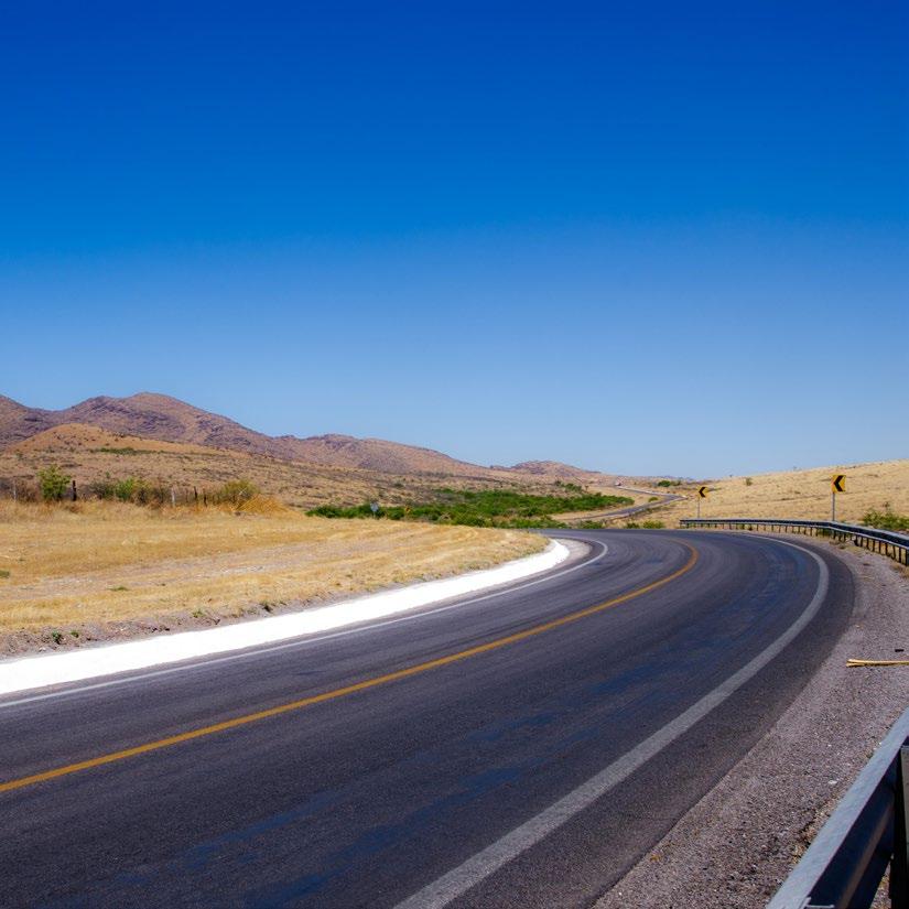 La ruta más rápida del Chihuahua Express, por sus largas rectas cruzando escenarios que recuerdan los westerns americanos de nuestra infancia, con los ocasionales y típicos cráneos de reses a los costados del asfalto, alguno que otro venado, conejos, buitres sobrevolando y repentinos correcaminos, como queriendo hacer su propia carrera.