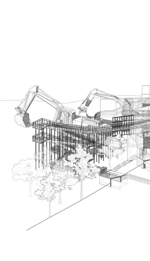 For almost 100 years, thousands of Americans lived in secluded tropical areas close to the Bay of Panamá, known as Zonians. These people, a diasporic and exiled community, are associated with the Panamá Canal Zone, which was controlled by the United States as an unincorporated territory (1903 –1979). Today, Zonians face issues of cultural identity and near ‘extinction’. In Panamá City, this long-term disunity of regional regimes has led to the fragmentation of its urban fabric and uneven regional development. The project, in the form of a museum, attempts to preserve traces of the Zonians before they disappear. The influence of the gold towns and silver towns produced by a racially segregated system was transferred to a sequence of architectural spaces. This exploration of Zonian culture deepens the understanding of the region and leads to a unique spatial form with new interpretations. The project is situated on Sosa Hill, visually connecting the canal, Casco Antiguo, and the Panamá Canal Administration Building – and exposing the imbalances between regions. Using the canal steam excavator as a ‘carrier’ symbolically transcends this – looking through the rusty machine to the city and canal beyond. Visitors constantly oscillate between buildings and the natural environment, forming a rich spatial sympathy with the mountain. The moment the visit ends, the past is forgotten.
