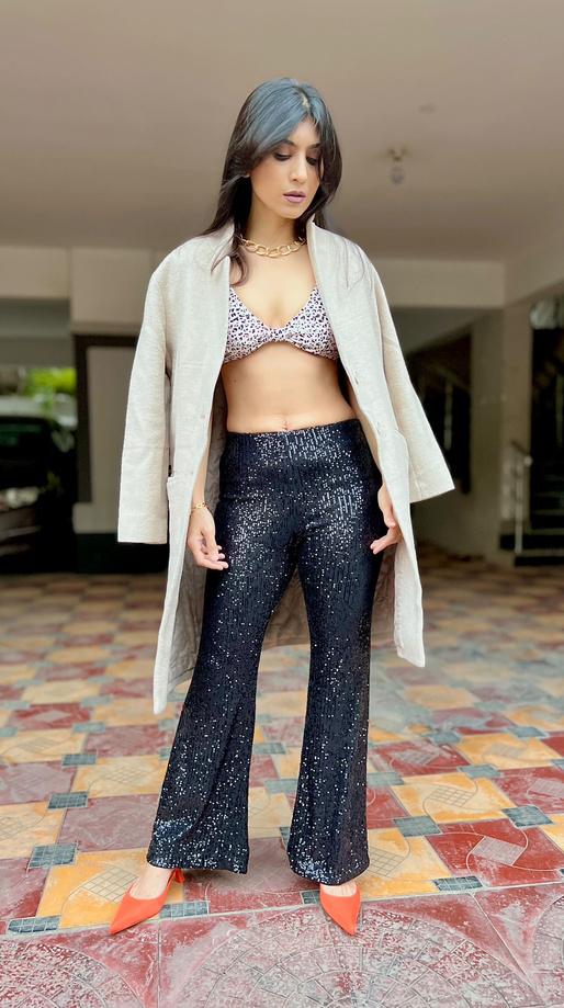 According to Vogue no shirt, no problem. Runways have been taken over by the bralette’s obsession and the same goes with Abhimanika as well. She expresses that wearing her bralettes over denim or wide-legged pants or bootcuts with sneakers or boots is her go-to.