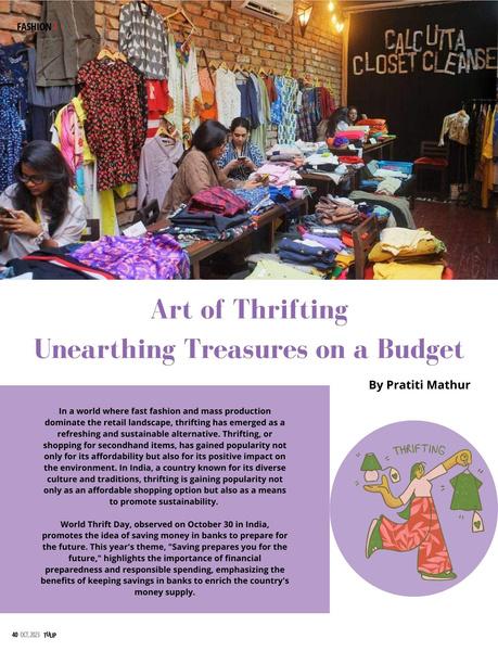 13.LIFESTYLE OveraCappuccinowithRamyaKrishnaPastakia 15.LIFESTYLE OnlineDatingTips 17.CUISINE TheArtOfBaking 24.CUISINE YouCan’tSipWithUs 31.COVERSTORY ReturningtoFashion,Reborn,Resurrected 40.FASHION ArtofThriftingUnearthingTreasuresonaBudget 46.FEATURE TheFempreneurRevolution 54.SPECIAL HalloweenTreats:GhoulishFashionsandMovieNights 60.EXCLUSIVE TheArtofPerfume:FRAGRANCEEDITION 73.INTERIORS HowMarbleCanEnhanceAnyBathroomStyle 76.TRAVEL SriLanka:ATapestryofCulture,Cuisine,andCharm