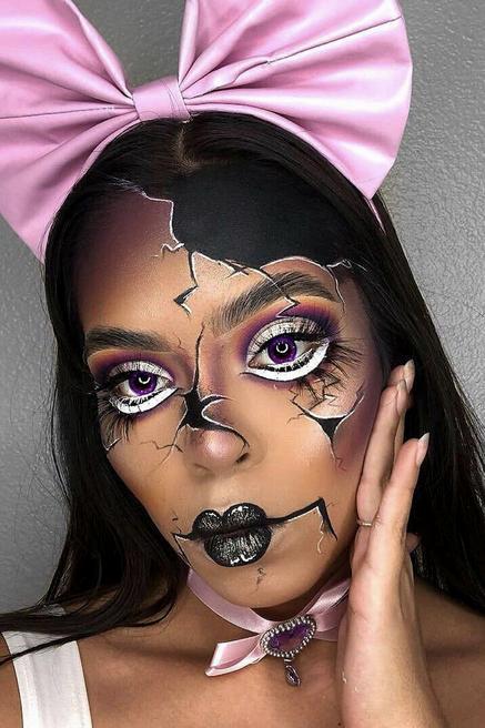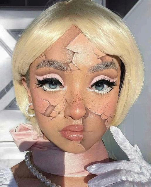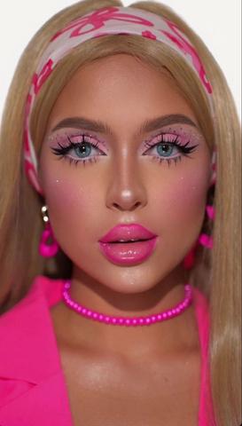 Turn yourself into a real-life Barbie straight out of the cartoon! Start by creating a flawless, airbrushed base with a dewy foundation and plenty of highlighter for that plastic-like glow. Add bold pink blush to the apples of your cheeks for a classic doll look. To get Barbie’s wide eyes, use winged eyeliner, false lashes, and white liner on your lower lash line to make your eyes pop. Choose a vibrant pink eyeshadow and blend it with shimmer. Finish with glossy, bubblegum pink lips. For an extra touch, add rhinestones or glitter for that overthe-top Barbie sparkle!