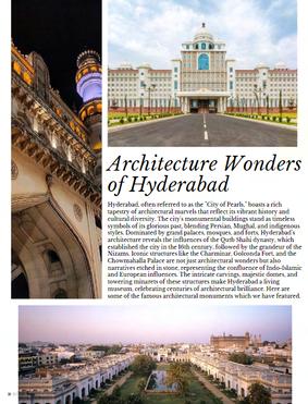 DWe are thrilled to present our exclusive October edition, packed with stories celebrating the essence of Hyderabad and ear Readers, much more. This month, we take you on a journey through the city’s architectural wonders. Our cover story shines a spotlight on the stunning structures that define Hyderabad's skyline, from historical monuments to modern marvels, reflecting the true beauty and charm of the city’s design and culture.