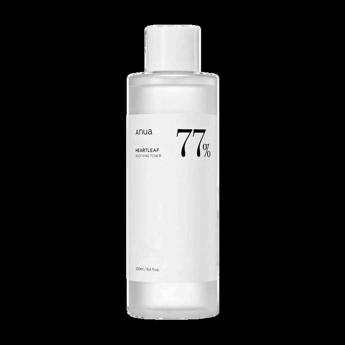 The Anua 77 Heartleaf Toner is a gentle, soothing toner made with 77% heartleaf extract, known for its calming and antiinflammatory properties. This lightweight toner is ideal for sensitive or irritated skin, as it helps reduce redness, balance oil production, and hydrate the skin without causing irritation. The heartleaf extract, combined with minimal and clean ingredients, makes it perfect for soothing breakouts, calming inflamed skin, and providing a refreshing, hydrating boost. Its non-sticky, watery texture absorbs quickly, making it a great first step in any skincare routine to prep the skin for deeper hydration and nourishment.