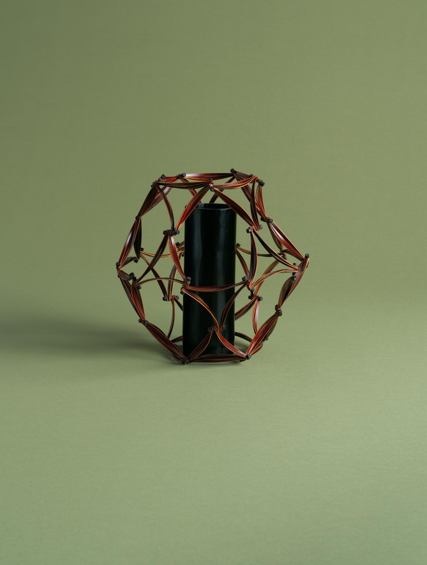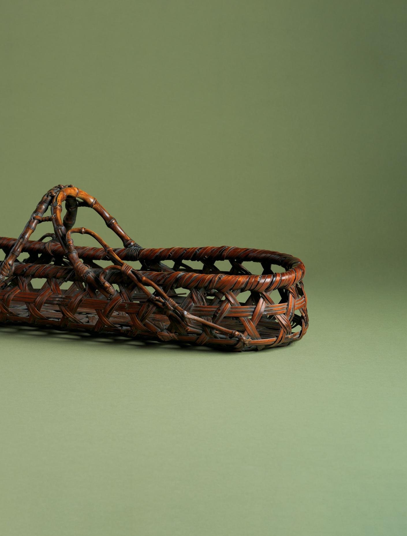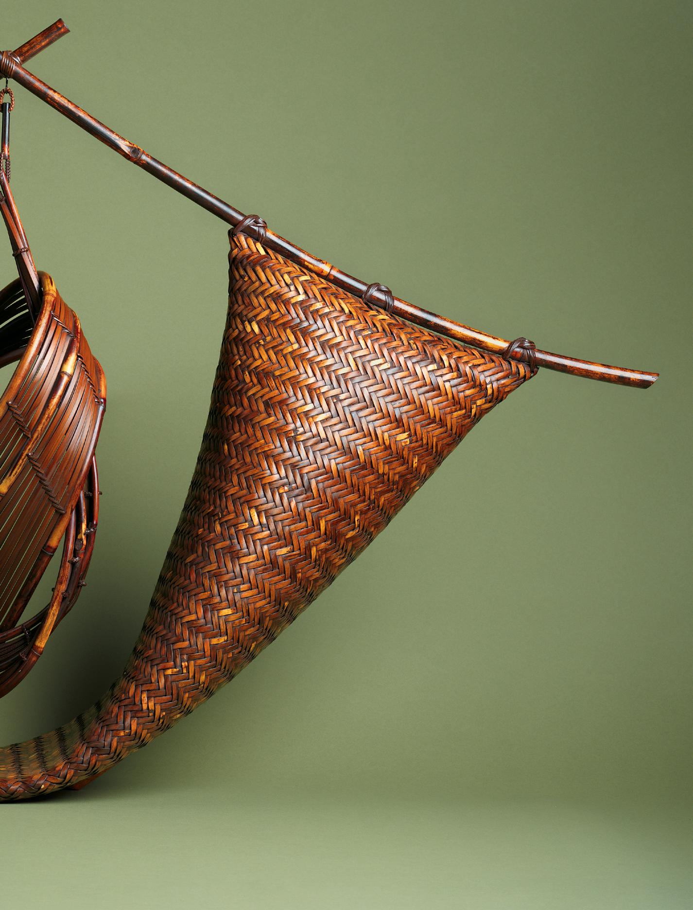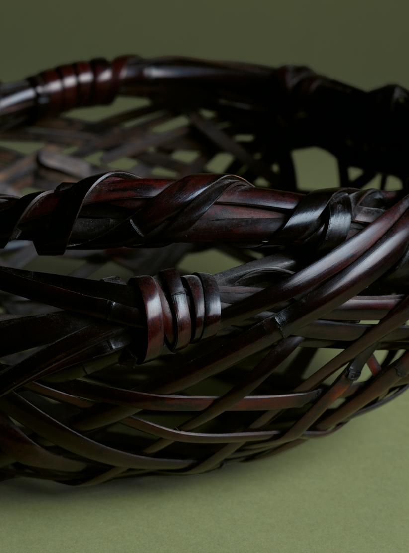 Susudake (smoked bamboo) and rattan; parallel-line construction, twining, knotting