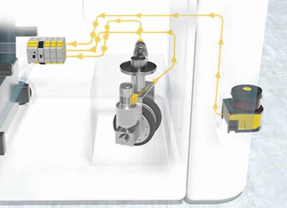 Soluția: Comanda pentru activarea și dezactivarea conveyorului este transferată ușor, fără contact și economic, între vehicul și conveyor, prin senzorii optici emițător-receptor din seria 3. Senzorii se aliniază ușor datorită luminii vizibile și indicatorilor LED. Insensibili la lumina ambientală, ei funcționează stabil și eficient.