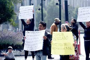 Habitantes de las localidades de Zacamulpa, San Jacinto y San Juan Yautepec, pertenecientes al municipio de Huixquilucan, se manifestaron frente a Palacio de Gobierno estatal para exigir la intervención de la gobernadora, Delfina Gómez Álvarez, y del titular de la Secretaría General de Gobierno (SGG), Horacio Duarte Olivares, para la reparación de la avenida Zacamulpa, en el tramo que va del paraje El Coyote hasta el denominado Río El Borracho. (MÁS INFORMACIÓN PÁGINA 4 A KARINA VILLANUEVA).
