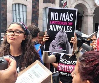 Esmeralda Naver, integrante del colectivo, explicó que la iniciativa está acompañada de más de 19 mil firmas de ciudadanos que están a favor de que ya no haya más corridas de toros, peleas de gallos, novilladas, becerradas, u otros.