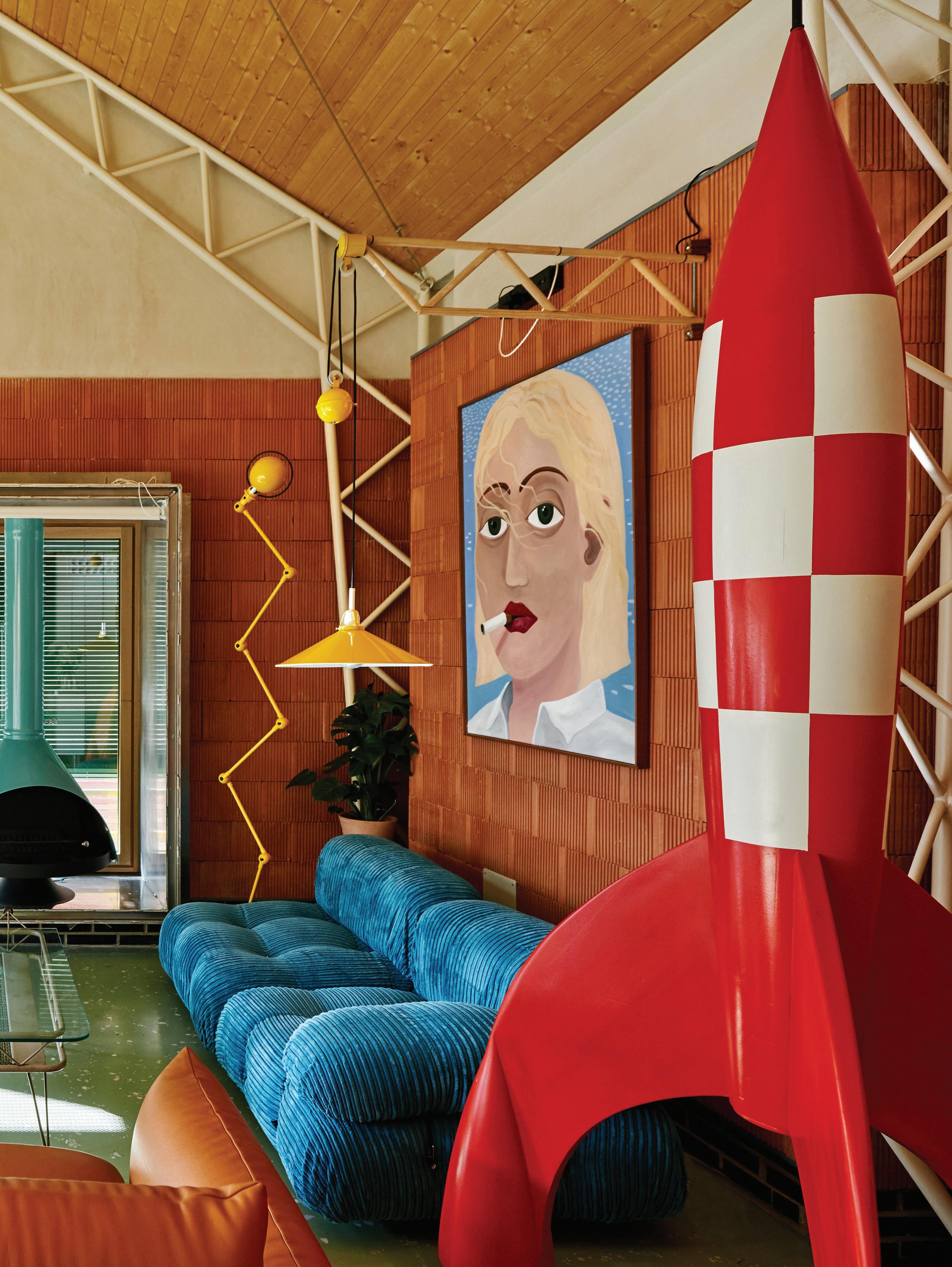 The interiors are equally playful and nostalgic. “The style is space-age, as the original two-storey house was built in the year Neil Armstrong was born,” Garcia-Conde says, adding, “and it was renovated in 2019, which coincided with the 50th anniversary of the moon landing.” And indeed, a three-metre rocket ship takes pride of place in the main space. “One of my fondest memories is a Tintin rocket my father made for my brother and me as a Christmas present,” he recalls. “Since I couldn't bring it home, I ordered a much larger one from a carpenter friend in the Canary Islands, where my parents live.”