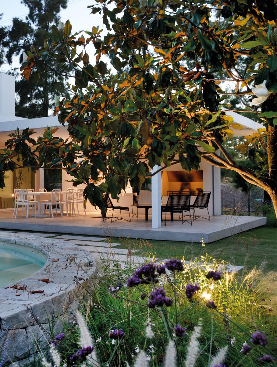 El diseño del paisaje, la piscina de borde infinito que se funde con el mismo y los microespacios del jardín, invitan a que la casa sea habitada tanto por dentro como por fuera, potenciando las cualidades del sitio en donde se implanta. ·