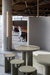 Además de abordar un espacio angosto, estrecho y lineal, ACDF enfrentó varias limitaciones inherentes al rediseño de edificios patrimoniales, incluidos problemas normativos. Para cumplir con los requisitos de salida de emergencia, se construyó un nuevo corredor de evacuación para la sala de reuniones del sexto piso, cruzando la estructura de madera expuesta, para conectarse a una salida existente. Otro desafío implicó desarrollar, en colaboración con los arquitectos del edificio base, una estrategia de aislamiento del techo exterior, permitiendo que las vigas de madera expuestas del interior del techo siguieran siendo parte del diseño del espacio. De manera innovadora, la empresa también abordó el problema de la escasez de luz natural al diseñar e implementar una estrategia de iluminación ambiental.