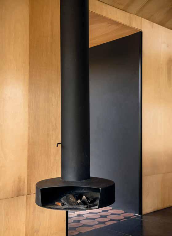 La casa está equipada con muebles empotrados hechos a medida que incorporan las funciones de servicio necesarias y cubren los accesos a las zonas privadas de la casa. Mesas de madera maciza pulida sobre estructuras de acero fueron diseñadas especialmente para la casa.