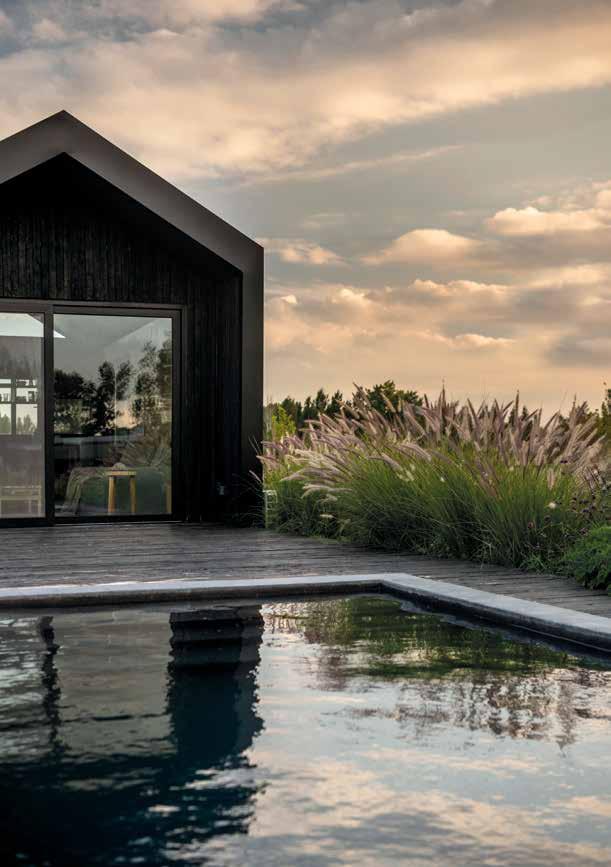 La arquitectura se basa conceptualmente en una atmósfera fuerte y distintiva, refinada en los detalles y elementos del interior y en la conexión visual y funcional con el paisaje del jardín circundante.