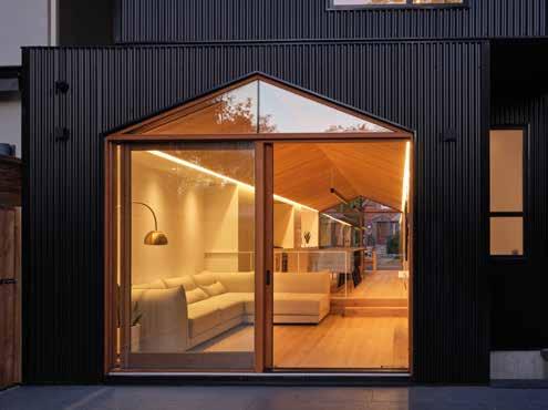 La casa Everden pone gran énfasis en la experiencia del espacio, permitiendo flexibilidad con la expresión material. La casa cuenta con un revestimiento exterior de metal corrugado: duradero, asequible y familiar. El material se eleva mediante detalles precisos de niveles y parapetos para crear la ilusión de cajas apiladas. •