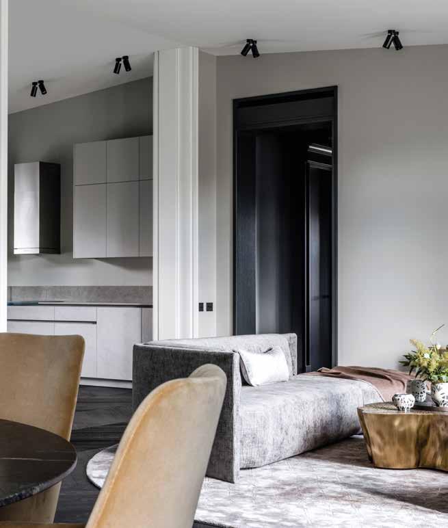 El objetivo de este proyecto era crear un interior contemporáneo que abrazara respetuosamente la arquitectura neoclásica del edificio y al mismo tiempo atendiera los requisitos únicos del cliente. La familia no vive en la ciudad pero la visitan a menudo por motivos de trabajo. Su sueño era no tener que alojarse más en hoteles, sino poder disfrutar del uso de un departamento propio, diseñado a partir de sus preferencias personales.