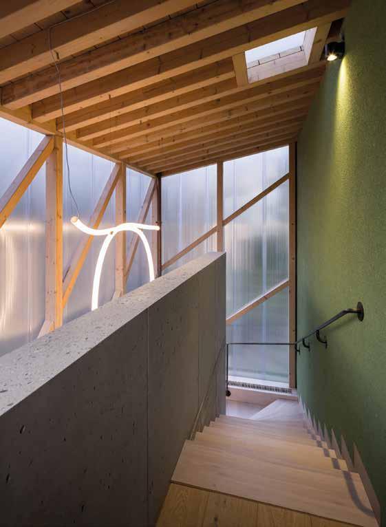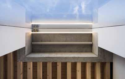 Los arquitectos trabajaron cuidadosamente con diferentes formas de luz, con claraboyas intensas, luz suave y difusa detrás de la fachada semitransparente, que influye en la sofisticada composición de las aberturas del frente.