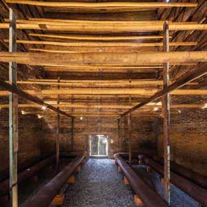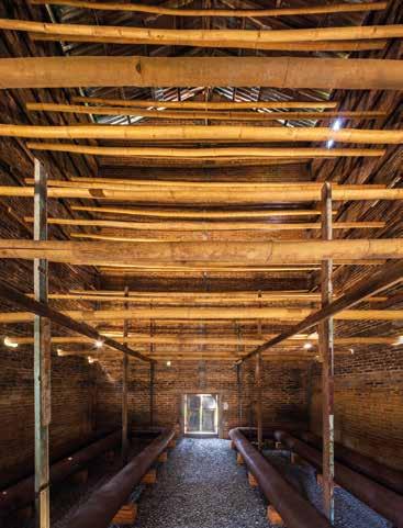 granero existente y siendo flexible para su ampliación. Los grandes árboles que daban sombra se conservaron mediante técnicas de arboricultura adoptadas para mantener la coexistencia entre ellos y los graneros. Además, los carteles informativos frente a los graneros muestran evidencias reales del tiempo.