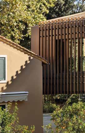 Los dos pisos superiores albergan los ambientes principales. Se accede desde el pasillo de la planta baja a través de una cómoda escalera de madera realizada con paneles de roble, que evoca un ambiente hogareño. La escalera conduce al salón principal con asientos bajos, cocina y comedor con acceso a la terraza ubicada en lo alto de los jardines. Esta parte de la casa se caracteriza por la presencia de un agradable crepúsculo durante la mayor parte del día. En los meses de verano, es posible ampliar el espacio habitable hacia el exterior y conectarlo perfectamente con el jardín. La sala de estar cuenta con un baño verde y alberga un pequeño lavadero.