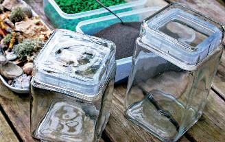 Glass jars (the square ones are ideal if you want to lie them on their side)